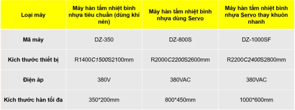 Các hình ảnh sản phẩm bình nhựa nhiên liệu ô tô Bảng thông số kỹ thuật máy hàn cho bình nhựa nhiên liệu ô tô